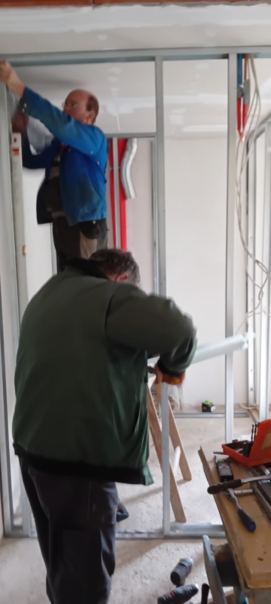 Die Innenarbeiten in der alten Schule schreiten gut voran. Es sind sogar die Fenster schon drin.